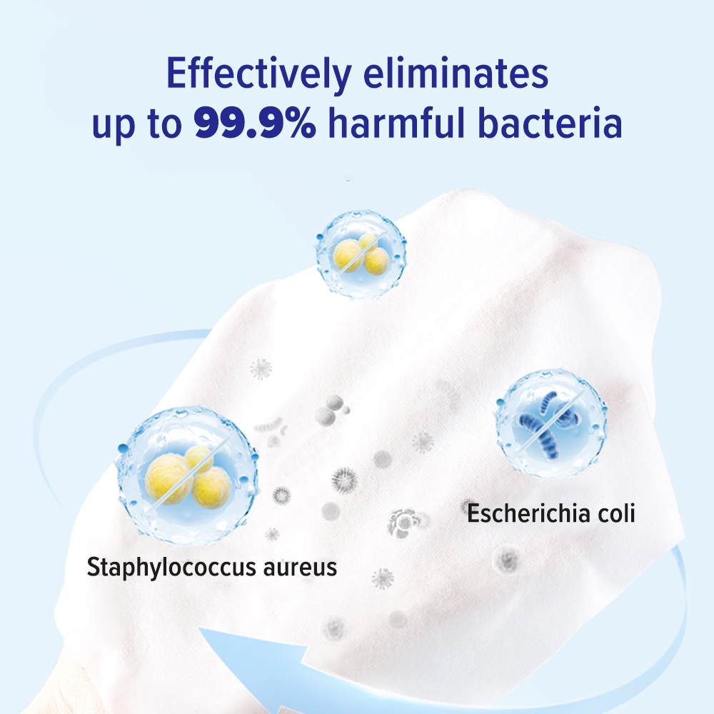 Bactericidal active ingredients and content: Benzalkonium chloride (0.055%-0.075%) (mass fraction) has a killing effect on Staphylococcus aureus and Escherichia coli.