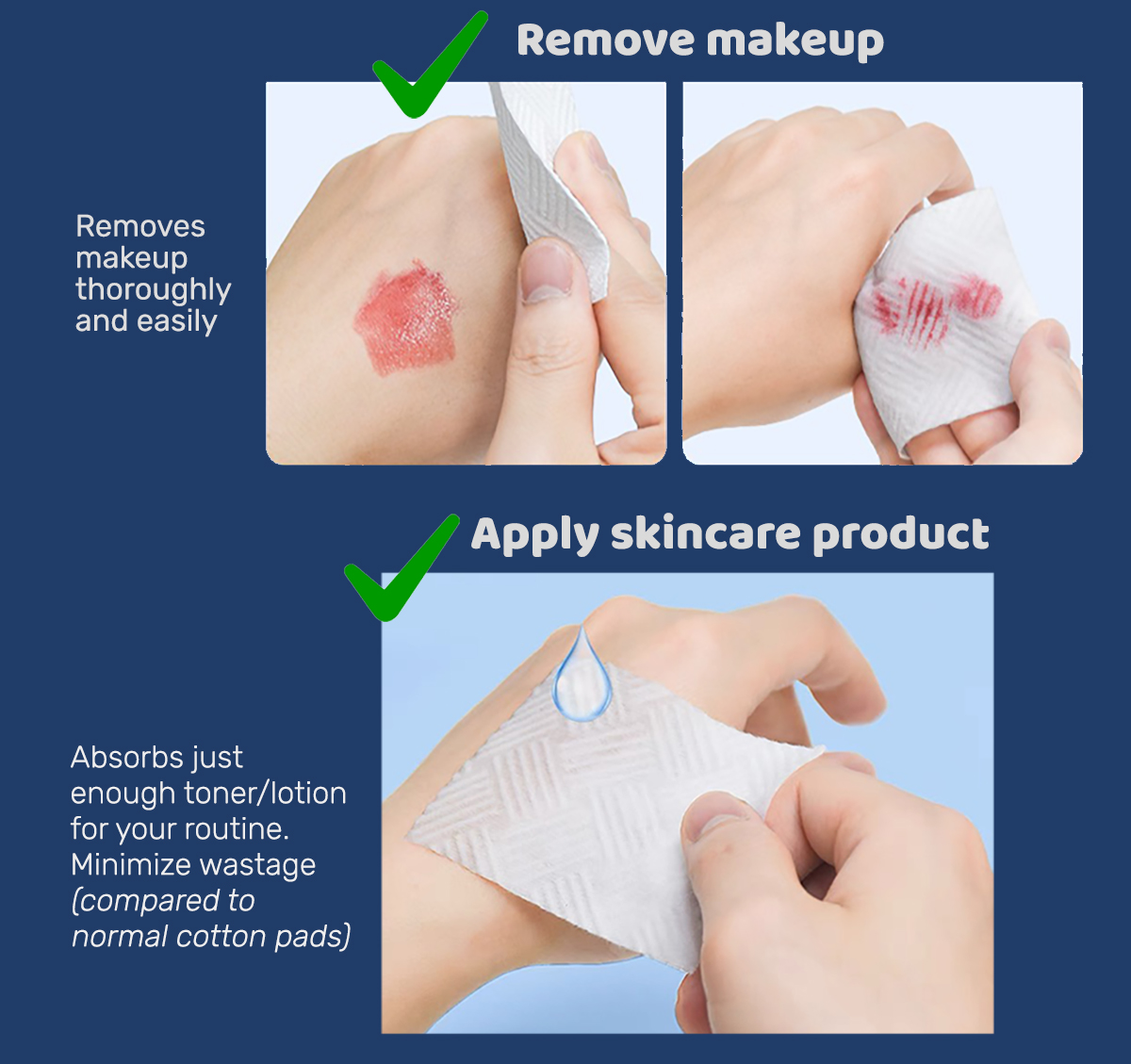 •Size: 6x8cm (Bigger than usual cotton pads)